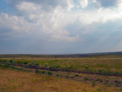 Thursday, 4 August 2005. Elk City, OK to Albuquerque, New MexicoBack onto I-40 about 8:30 a.m. While a scheduled "burn" day, the trip from Elk City to Albuquerque turned out to be very pleasant. The heat has broken and temperatures were mostly in the mid to high 80's. We dodged a few showers, but otherwise traveling was uneventful. Traveled the through the remainder of Oklahoma, then the panhandle of Texas, then into New Mexico and a time change. It's remains surprising to us how the terrain and flora seems to change as we go from state to state — Oklahoma to Texas to New Mexico, even though the state boundaries seem to be more or less arbitrary lines on a map. As from Missouri to Oklahoma, after each border it soon looks different. We got to Albuquerque about 5 p.m. The drop from the New Mexico