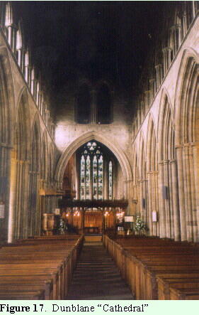 | Took a short trip to Doune and toured the medieval castle there, and then to Dunblane to visit the "cathedral." (See discussion about cathedrals in Scotland when I visit St. Giles). Took a late soup lunch at Dunblane, and Sharon (I suspect out of desperation) purchased nasal strips in the hope that it would cure my snoring. |