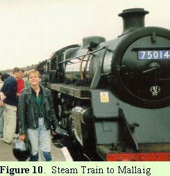 From the evening of Tuesday, August 4, 1998 through Thursday, August 13, 1998, my daughter Sharon, and I took a motorcycle trip through Northern England and Scotland. Sharon is 30, and just learned to ride this Spring. We flew to London, Sharon from Boston, I from New York and arranged our flights to arrive within 诵r of each other. We hired bikes at a shop near London, and rode about 250 miles the first day to a friend of Sharon's in Redcar on the northeast coast of England, staying there two nights. The second day was spent on a day-trip through the Yorkshire Moors. The third day we rode across northern England to the west coast, spending a night at Douglas Castle just inside Scotland, and then, on the fourth day, up along the west coast of Scotland to the Scottish Highlands and Fort William where we spent two nights. The fifth day we day-tripped to Mailag and took the ferry to the Island of Skye, returning to Fort William that evening. The sixth day, we returned east across the central Highlands to the Lowlands, staying at Stirling for two nights and touristing Edinburgh the seventh day, going to the Edinburgh Tattoo that evening. We returned back to Redcar on the eighth day, then to London on the ninth day for the flight home. Total of about 2200 km(1370 miles). While that is a summary of the road travel, it is not, of course, a summary of trip. One of the first questions I'm often asked is, "Why a trip to Scotland? You Scottish?" As far as I know, I have no Scots blood, although I am 1/4 Welsh (and therefore Celtic), which I have used to explain my excessive split personalities -- German sense of order and Welsh passion. But several years ago I got coerced into learning the bagpipes, and inevitably got immersed into Scottish culture and history ( I think Scottish "culture" and "history" are really the same thing). I'm also a Presbyterian, which had one of it's roots in Scotland, so I've seen the culture from that side. |