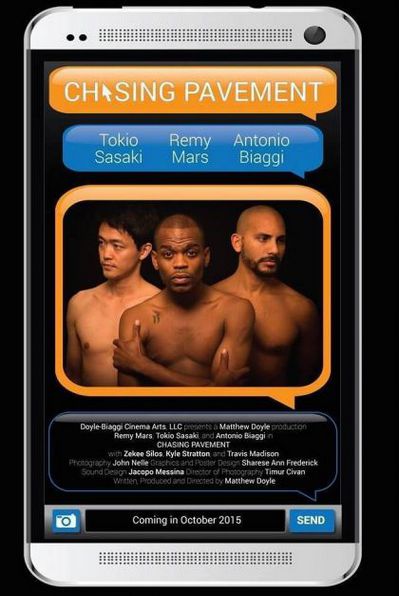 Chasing Pavement stars Remy Mars as Elijah Young, an 'urban' porn star who is preparing to leave the adult entertainment industry and start a new career as a chef. His new roommate, Takeshi, played by Tokio Sasaki, is a Japanese immigrant who is looking for a new start in the information technology field. Takeshi, who feels completely invisible in the United States, becomes obsessed with his extremely visible flatmate. Takeshi's obsession culminates in a violation of boundaries that brings the two together for a moment of intimacy that neither will soon forget. The movie also stars Antonio Biaggi as Bryson Colon, a man with a troubled past who frequently hires Elijah as an escort, but wants much more.