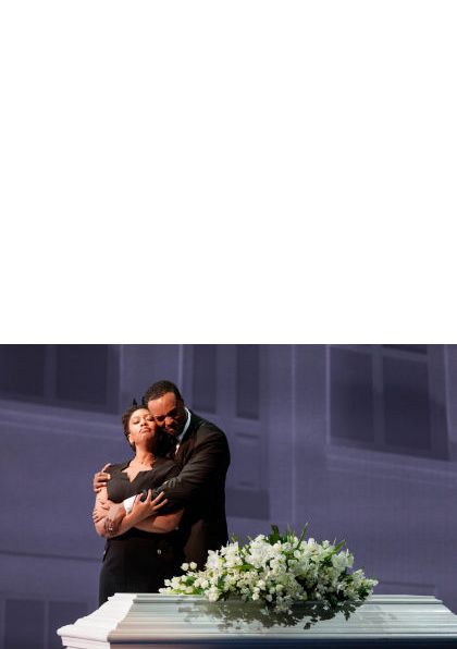 Reflective of a familiar American headline, this new work by Jeanine Tesori and Tazewell Thompson centers on the hopes and fears of a young black couple as they raise a son in Harlem. In this story of love and loss, we see the father, a police officer, and the mother supported by a loving community of fellow law enforcement, churchgoers and friends as they respond to the killing of their son. |