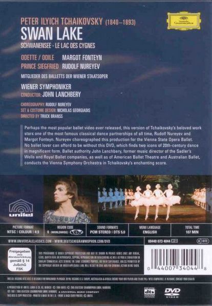 Swan Lake, but more than "good enough." As one might expect. with Rudolf Nureyev as both choreographer and dancing the role of Prince Siegfried, the focus shifts from the classical Odette to Siegfried. This does not detract much from the story, but with Nureyev's very tight tights, athletic dancing, and erotic good looks, it is perhaps inevitable. Yet, Margot Fontayn is, I think, overall the more skilled. Nureyev facial makeup is just a hair from full drag (and this in 1966, years before the present fascination with dragdom). And his lips are painted a luscious red, that just makes you want to be sucked in. The production is equally as luscious; wonderful costumes and scenery, The Vienna State Opera Ballet corps du ballet may not be top tier, but more than adequate. I wish that it would have been originally filmed in a wider aspect ratio; the dancers seem to fall into the picture frame rather than out into the wings. As one would expect from Deutsche Grammophon the music and cinematography is presented expertly.