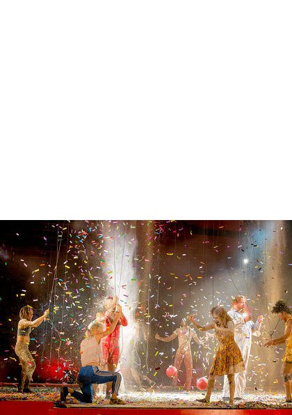 Two titans of avant-garde performance—director Anne Bogart and choreographer Elizabeth Streb—join forces for the first time to take on works by Obie Award–winning rebel playwright Charles Mee in an original production co-produced by Peak Performances. In FALLING & LOVING six actors from SITI Company and six dancers from STREB Extreme Action storm the stage and launch into the air with the aid of a Guck Machine, an enormous contraption conceived by Streb that features rings and buckets armed to continually release materials into the stratosphere. Artists, ideas, and objects collide in this radical new production. |