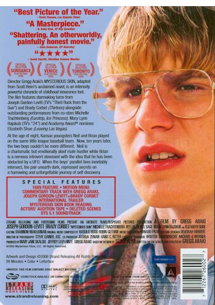 Motion Menu Commentary Track With Gregg Araki, Joseph Gordon-Levitt Brady Corbet International Trailer Mysterious Skin Book Reading Actors' Audition Tape Deleted Scenes |