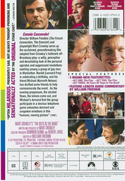 The play, on which the film is based, was first performed in 1967, a year before the Stonewall riots -- The film, released in 1970, is performed by the same actors as those that appeared in the play -- I personally was not yet out and still married (as are some characters in the film) -- the time was at the cusp of the beginning of the gay liberation movement, and is said to have been the first play, then film, to portray with frankness homesexual men -- They are, however, stereotypes portrayed mostly as sad and unhappy people -- In my personal social interactions just a few years later these characters had pretty much vanished -- Richard says that when he saw this film as an out student at Stanford, he and his friends just could not understand the charactization and assume it was a NYC thing-- It is interesting to note that I did not view this film until 46 years after its release, and found the protagonists so irritating that I considered not watching the film further -- It is, however, a period piece and an essential film of modern gay cultural history.