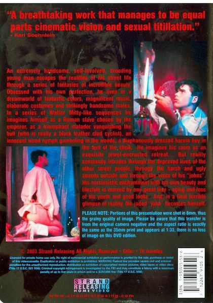 As far as I can determine, Pink Narcissus is the only film James Bidgood ever directed -- After some seven years of filming, with no end in sight, the producers and backers apparently took the raw footage from him and they themselves finished it -- as a protest, Bidgood refused to have his name included in the credits when first released, and was instead listed as "Anonomous" -- Nevertheless, as it has now been remastered, it is a beautiful homo-erotic masterpiece -- Bidgood, at the time of filming (late 1960s-1971) was a still photographer and window dresser -- His sets are filled with color and framed as in a store window -- and the luscious actors are carefully staged with the eye of a photographer -- The story line is that of a prostitute's fantasies and dreams -- Some of the scenes were quite humorous, especially as I today recall gay culture of the time --