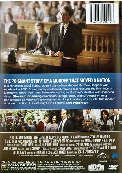 In a senseless act of hatred, openly gay college student Matthew Shepard was murdered in 1998. This critically-acclaimed, moving film recounts the final days of Matthew's killers' trial—and the weeks leading to Matthew's death—with unnerving detail. Stockard Channing delivers an unforgettable, Emmy® Award-winning performance as Matthew's grieving mother, Judy, in a story of a murder that moved a nation to action. Also starring Law & Order's Sam Waterston. |