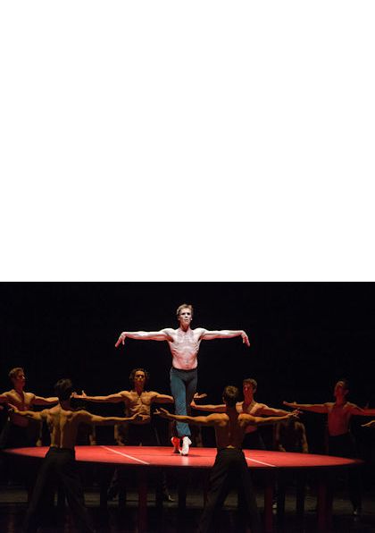 "But no-one knows how to whip an audience into a lather quite like Béjart. His Boléro is a triumph of erotic kitsch, a lap dance in the guise of high art. At the center of the stage stands a red table, upon which a shirtless man pulses his legs forward and back, while slowly raising his arms, hands like cobra heads, then rubs his chest and thighs, staring out at the audience suggestively all the while. He puts his hand under his chin, as if blowing kisses, frames his crotch with his palms, pulses his bare and increasingly sweaty chest. Who can resist? All around him, men sit in high-backed chairs, caressing their chests and opening their legs as if becoming increasingly aroused. Then they begin to stand up in twos and threes to do their own bump and grind, stalking the object of their adoration, ready to pounce. Over-the-top and vulgar as it is, it fits the music perfectly-after all, Ravel composed it for a similarly exotic dance performed by the vampy Ida Rubinstein in Paris in 1928. Béjart’s Boléro represents the exaltation of the dancer as the utlimate sex symbol. The dance can be performed by a man or a woman. On July 12, the majestic Marie-Agnès Gillot managed to class it up a bit, but on the 11th, Nicolas Le Riche, one of the company’s senior stars, was fabulously predatory, a raging furnace of self-love and sex appeal. One imagines that after the show he must have ravaged a hundred virgins, but maybe he simply went home and soaked his feet in the tub, but in any case, he was magnificent, good taste (and choreography) be damned.' DanceTabs, By Marina Harss on July 13, 2012