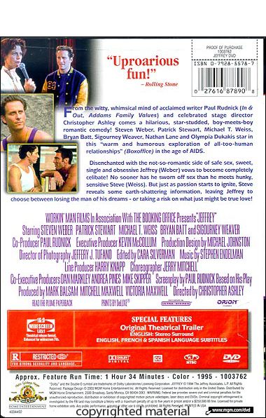 This film is very much of the middle phase of the AIDS plague, where treatments (such as AZT) were able to prolongue lives, but were rarely effective long term -- Jeffrey's dilemma was to be found among many gay men -- Unfortunately it was manifest in many gay men (as well as the general public) as a HIV/AIDS-phobia, not only in the sense of a fear of the disease, but in a hatred of gays with AIDS/HIV (PWAs) by gays themselves -- Jeffrey was originally written as a play, and its stage genesis comes through in the cinematic production --The movie has its high points, but never fully seems to quite make a convincing whole -- It is mostly well acted -- In spite of its weaknesses, it is a "must see".