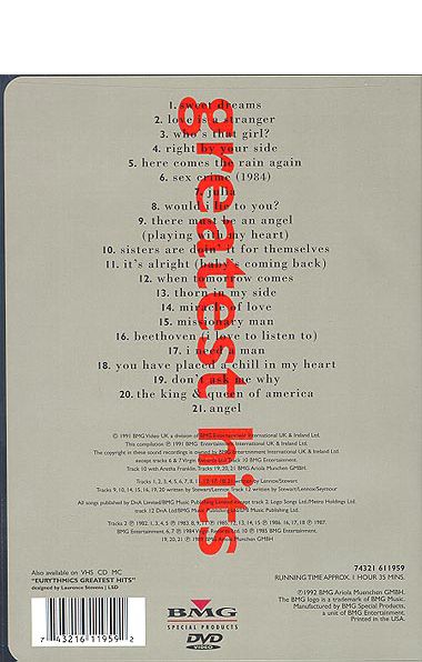 The program:1. Sweet Dreams2. Love Is a Stranger3. Who's That Girl?4. Right by Your Side5. Here Comes the Rain Again6. Sex Crime (1984)7. Julia8. Would I Lie to You?9. There Must Be an Angel (Playing with My Heart)10. Sisters Are Doin' It for Themselves11. It's Alright (Baby's Coming Back)12. When Tomorrow Comes13. Thorn in My Side14. Miracle of Love15. Missionary Man16. Beethoven (I Love to Listen To)17. I Need a Man18. You Have Placed a Chill in My Heart19. Don't Ask Me Why20. The King & Queen of America21. Angel |