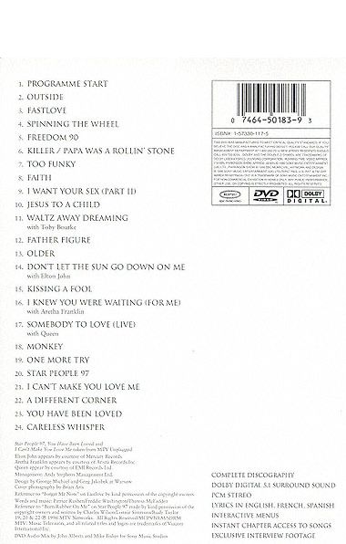 Bathroom escapades aside, there's no denying that George Michael has been responsible for some of the biggest party jams of the '80s and '90s. Have you ever noticed what happens to a room when "Faith" erupts from the speakers? Aside from the funk-fueled "Fastlove," the material from his most recent album, Older, is well and truly overshadowed here by the megahits from days gone by. The first disc starts off slow, with "Careless Whisper" and his remake of "I Can't Make You Love Me" the only real high points among otherwise bland ballads. It's disc 2 that exudes the essence of Michael, with "Fastlove," "Too Funky," and "Freedom 90" providing a nonstop dance-athon, and "I Want Your Sex" and "Faith" picking up the slack. The package also includes his rather unexciting (but hugely popular) duets with Queen and Elton John, his perfect pop pairing with Aretha Franklin, and two new tracks. Set aside some serious time for this one, folks. The hits don't stop. |