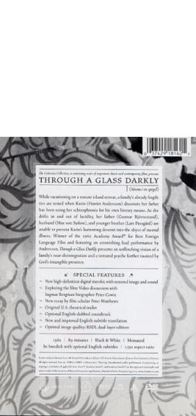 Karin hopes to recover from her recent stay at a mental hospital by spending the summer at her family's cottage on a tiny island. Her husband, Martin, cares for her but is frustrated by her physical withdrawal. Her younger brother, Minus, is confused by Karin's vulnerability and his own budding sexuality. Their father, David, cannot overcome his haughty remoteness. Beset by visions, Karin descends further into madness. |