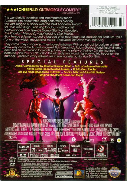 Two drag queens and a transgender woman contract to perform a drag show at a resort in Alice Springs, a town in the remote Australian desert. As they head west from Sydney aboard their lavender bus, Priscilla, the three friends come to the forefront of a comedy of errors, encountering a number of strange characters, as well as incidents of homophobia, whilst widening comfort zones and finding new horizons. |