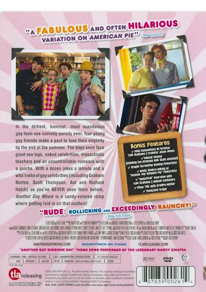 In the dirtiest, funniest, most scandalous gay-teen-sex-comedy-parody ever, four young gay friends make a pact to lose their virginity by the end of the summer. The boys soon face giant sex toys, naked celebrities, masochistic teachers and an uncontrollable romance with a quiche. |