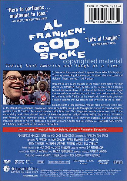 Join filmmaking duo Chris Hegedus and Nick Doob as their cameras follow Franken to book signings, campaign rallies and the launch of Air America Radio, documenting his transformation from irreverent funnyman to political pundit. |