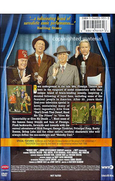 The renowned comedy troupe, the Firesign Theatre, perform material from their first four albums and their latest CD live on stage from CBS studios. |