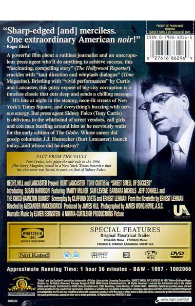New York City newspaper writer J.J. Hunsecker holds considerable sway over public opinion with his Broadway column, but one thing that he can't control is his younger sister, Susan, who is in a relationship with aspiring jazz guitarist Steve Dallas. Hunsecker strongly disproves of the romance and recruits publicist Sidney Falco to find a way to split the couple, no matter how ruthless the method. |