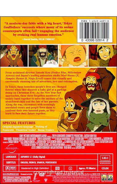 During a Christmas Eve in Tokyo, three homeless people, middle-aged alcoholic Gin, former drag queen Hana, and dependent runaway girl Miyuki, discover an abandoned newborn while looking through the garbage. With only a handful of clues to the baby's identity, the three misfits search the city to find its parents. |