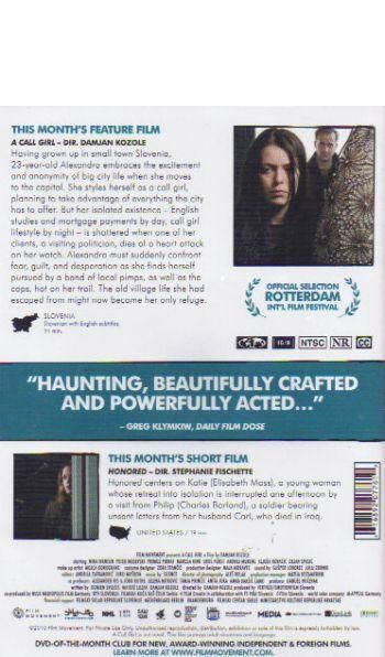 Having grown up in small-town Slovenia, 23-year-old Alexandra embraces the excitement and anonymity of big city life when she moves to the capital. She styles herself as a call girl, planning to take advantage of everything the city has to offer. But her isolated existence—English studies and mortgage payments by day, call girl lifestyle by night—is shattered when one of her clients, a visiting politician, dies of a heart attack on her watch. Alexandra must suddenly confront fear, guilt, and desperation as she finds herself pursued by a band of local pimps, as well as the cops, hot on her trail. The old village life she had escaped from might now become her only refuge.