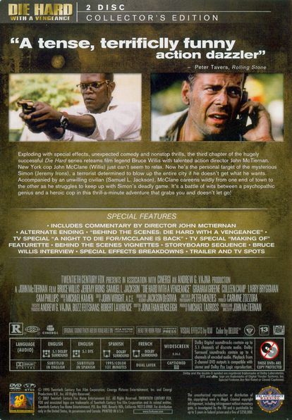New York detective John McClane is back and kicking bad-guy butt in the third installment of this action-packed series, which finds him teaming with civilian Zeus Carver to prevent the loss of innocent lives. McClane thought he'd seen it all, until a genius named Simon engages McClane, his new "partner" -- and his beloved city -- in a deadly game that demands their concentration. |