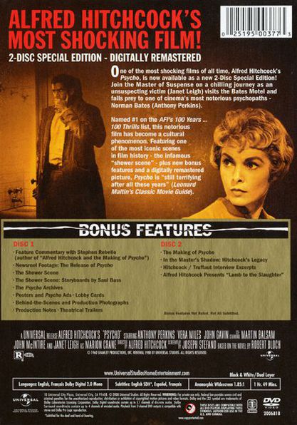 When larcenous real estate clerk Marion Crane goes on the lam with a wad of cash and hopes of starting a new life, she ends up at the notorious Bates Motel, where manager Norman Bates cares for his housebound mother. |