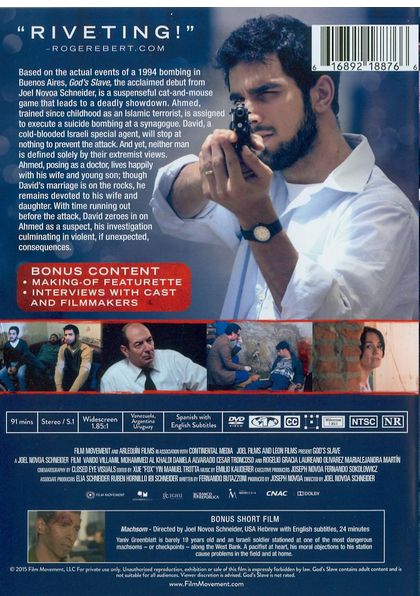 Inspired by true events, "God's Slave" is the story of Ahmed and David, two extremist characters, one Islamic and the other Jewish, who cross their paths while being in the opposite side of the conflict in the A.M.I.A bombings that took place in 1994 in Buenos Aires. |