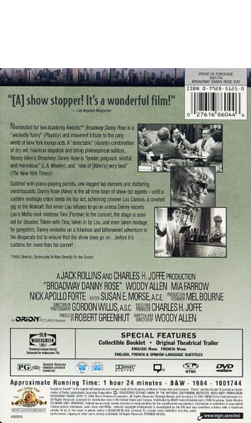 A hapless talent manager named Danny Rose, by helping a client, gets dragged into a love triangle involving the mob. His story is told in flashback, an anecdote shared amongst a group of comedians over lunch at New York's Carnegie Deli. Rose's one-man talent agency represents countless incompetent entertainers, including a one-legged tap dancer, and one slightly talented one: washed-up lounge singer Lou Canova (Nick Apollo Forte), whose career is on the rebound. |